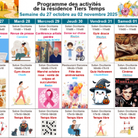 Publiée le 27/10/2025Bonjour à tous, le planning est là, tout chaud, tout beau ! 3 temps forts où les familles sont conviées: notre marché au profit d'octobre rose (vente de boutures de succulentes faites par les résidents et crêpes), les anniversaires du mois et la conférence du peintre Jean Claude Boyer. A très b [...] Lire la suite