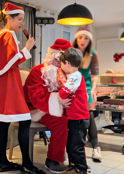 🎶 Les enfants ont ensuite entonné ensemble des chants de Noël, avant que le Père Noël ne fasse son entrée pour la distribution des cadeaux, très attendue par les petits… comme par les grands.