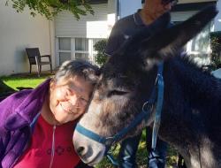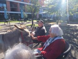 Cette semaine, nos résidents ont eu le plaisir de faire connaissance avec deux adorables ânes. Après une présentation pleine de douceur, chacun a pu profiter d’un moment privilégié de caresses et de brossage, pour le plus grand bonheur de tous.