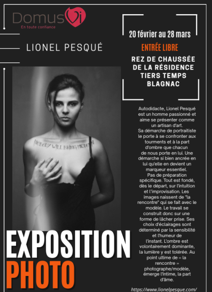Une exposition du photographe Lionel Pesquet est actuellement visible à la résidence. N'hésitez pas à venir la visiter, elle est ouverte au public exterieur à la résidence également.