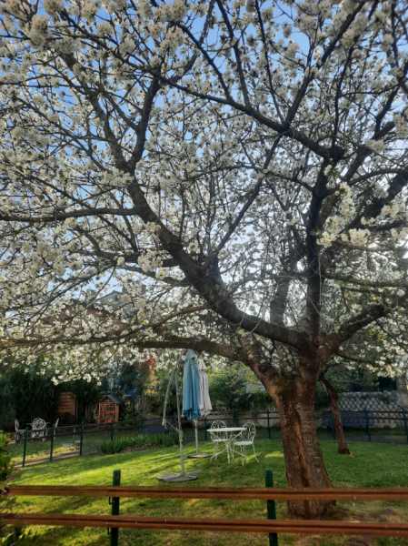 Chères familles, le jardin vous attend pour des moments ensoleillés. N'hésitez pas à venir nous rejoindre sous le cerisier, pour une promenade ou un goûter au soleil !