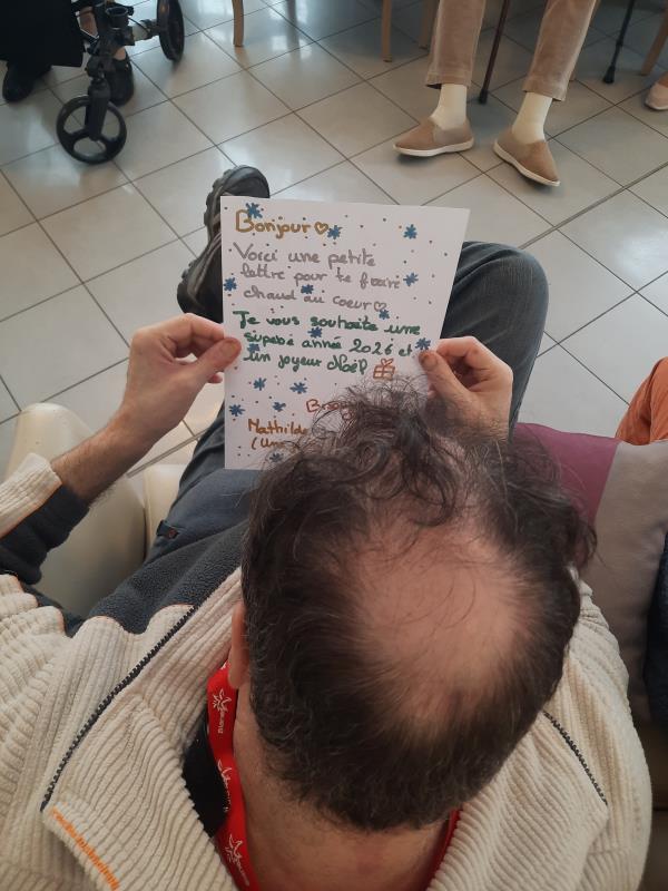 tous les jours nous ouvrons notre calendrier de l'avant: quelle surprise aujourd'hui lorsque nous avons découvert des lettres de l'entreprise mechachrome ! Cette entreprise a demandé à ses salariés et leurs enfants de nous envoyer des cartes de voeux, des souvenirs de Noël et des dessins... Nous les avons lu ensemble, quel plaisir !