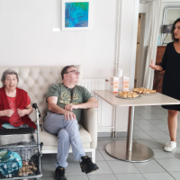 Publiée le 17/09/2025Ce matin, à 11h, résidents, familles et équipe se sont rassemblés pour un beau moment de partage autour de l’exposition de la peintre Hanane B., dont les œuvres habillent nos murs pour un mois. L’artiste a présenté sa démarche et [...] Lire la suite