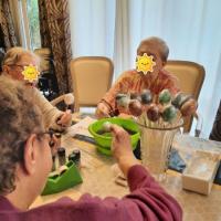 Publiée le 24/03/2023Cette semaine, les résidents se sont passionnés pour le « marbling » : après avoir déposé une peinture spéciale dans l’eau, ils ont fait rouler des œufs dedans afin d’obtenir un effet marbré. Difficile de les arrêter tant cela les a amusé... Les décorat [...] Lire la suite