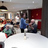 Publiée le 23/09/2021Ce jeudi 23 septembre c'est la fête à Tiers Temps. Véronique chanteuse est venu mettre une belle ambiance dans les différents restaurants de la résidence, à l'occasion de la fête des anniversaires des natifs du mois de septembre. Les résidents ont chanté, dansé et régalé de [...] Lire la suite