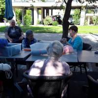 Publiée le 18/09/2019Par ces belles-après midi ensoleillées, il n'est pas question de rester à l'intérieur. Nous sortons et chacun fait ce qui lui plait : certains tricotent, d'autres font des mots croisés ou écoutent de la musique et improvisent une danse avec le personnel. Tout ceci dans une ambiance chaleureuse. Lire la suite
