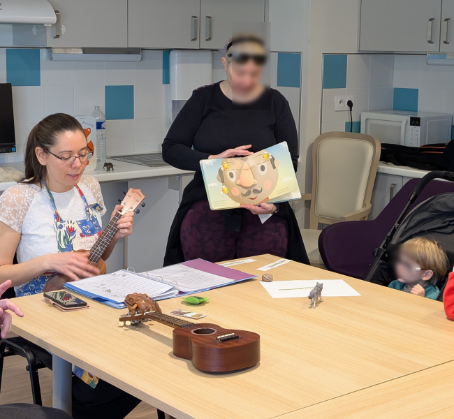 Avec Caroline notre chargée de projets, pour chanter ensemble des comptines au ukulélé.