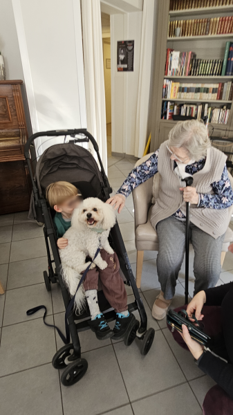 Jeudi nous avons eu le plaisir d’accueillir une classe de petite et moyenne section de l’école maternelle de l’Aérogare. Les enfants ont partagé un moment joyeux avec nos résidents en circulant sur trois ateliers différents :