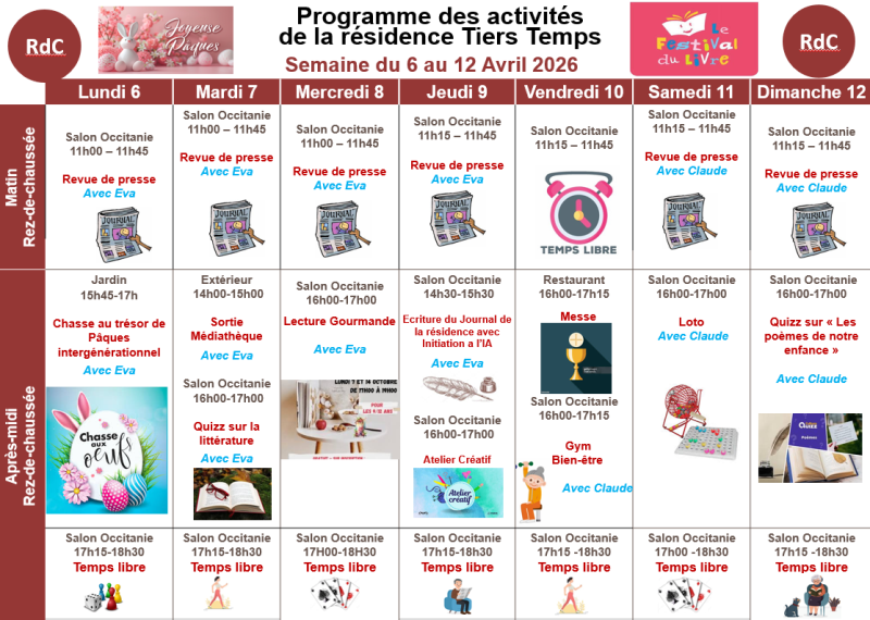 Sans en dévoiler le détail, de nombreuses animations viendront rythmer cette semaine dédiée à la culture et à l’imaginaire. Une sortie à la Médiathèque Odyssud est notamment prévue, offrant aux résidents une belle opportunité de découverte et d’ouverture sur l’extérieur.