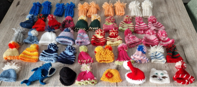Nos résidents ont tricoté 20 petits bonnets avec tout leur cœur. La section « Travaux d’aiguilles » de la FJEPS, qui se réunit trois fois par semaine à Blagnac, nous a également accompagnés, créant des bonnets tous plus mignons les uns que les autres ! Tous ces ouvrages seront envoyés fin novembre à la société Innocent pour contribuer à cette belle initiative.