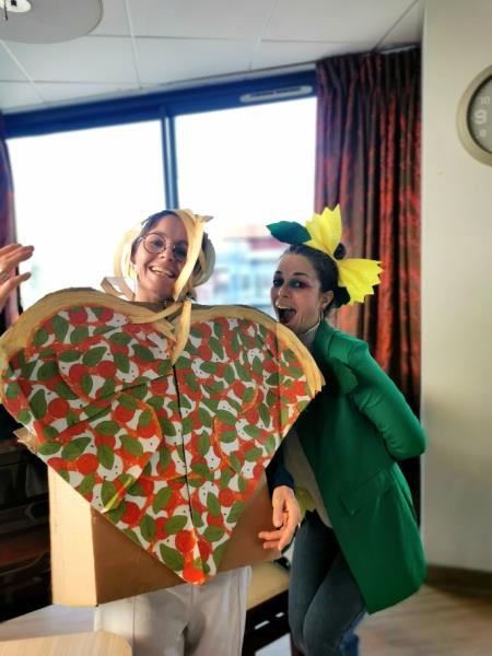 Hier, place au voyage avec une journée italienne : saveurs méditerranéennes, plats ensoleillés et ambiance conviviale ont régalé tout le monde. Les déguisements et la déco valaient le détour ! Un paquet de pâtes, agrémenté de petites feuilles de basilic pour notre animatrice ; une Margherita pour notre ergothérapeute (admirez les cheveux en croûte de pizza 🍕) ;