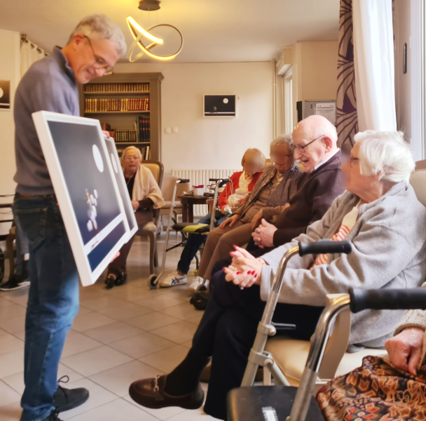 La conférence, qui s’est déroulée de 16h à 17h, a été un moment très convivial, riche en échanges et en interactions. Résidents, familles et professionnels ont pu poser des questions, partager leurs ressentis et dialoguer librement avec l’artiste, dans une ambiance simple et chaleureuse.