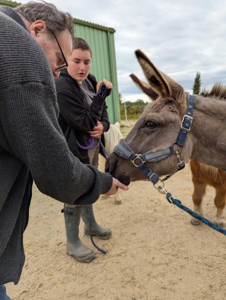 Grâce à la présence bienveillante des animaux, chacun a pu retrouver confiance dans ses mouvements, notamment lors des exercices réalisés avec un âne qui tirait doucement sur la longe, invitant à une posture stable et à une marche en conscience.